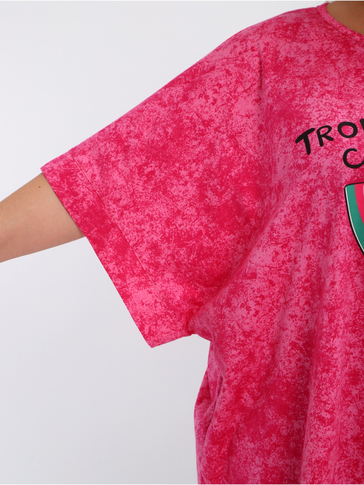 удобный короткий рукав и яркий принт на груди — идеально для повседневного образа!