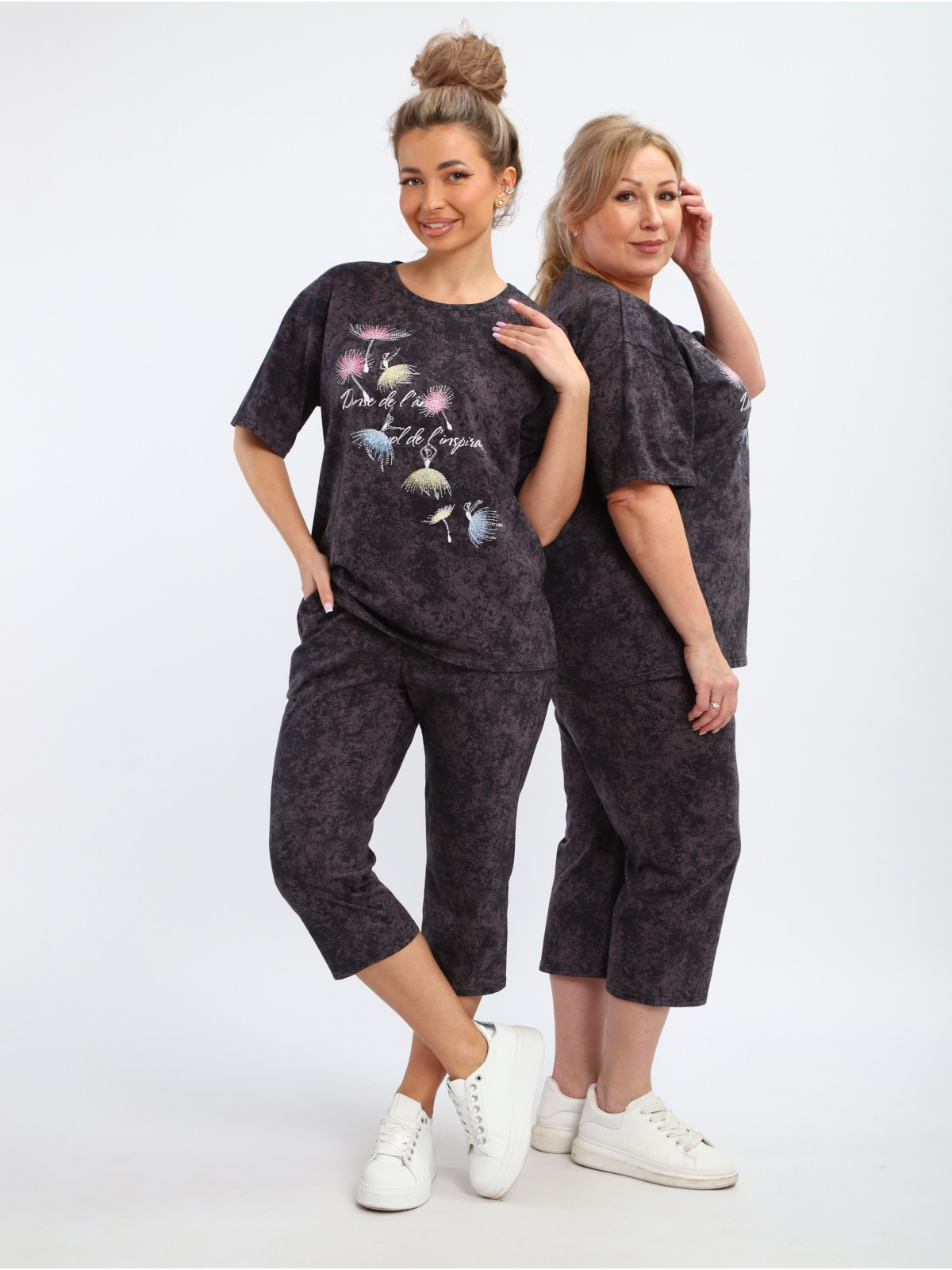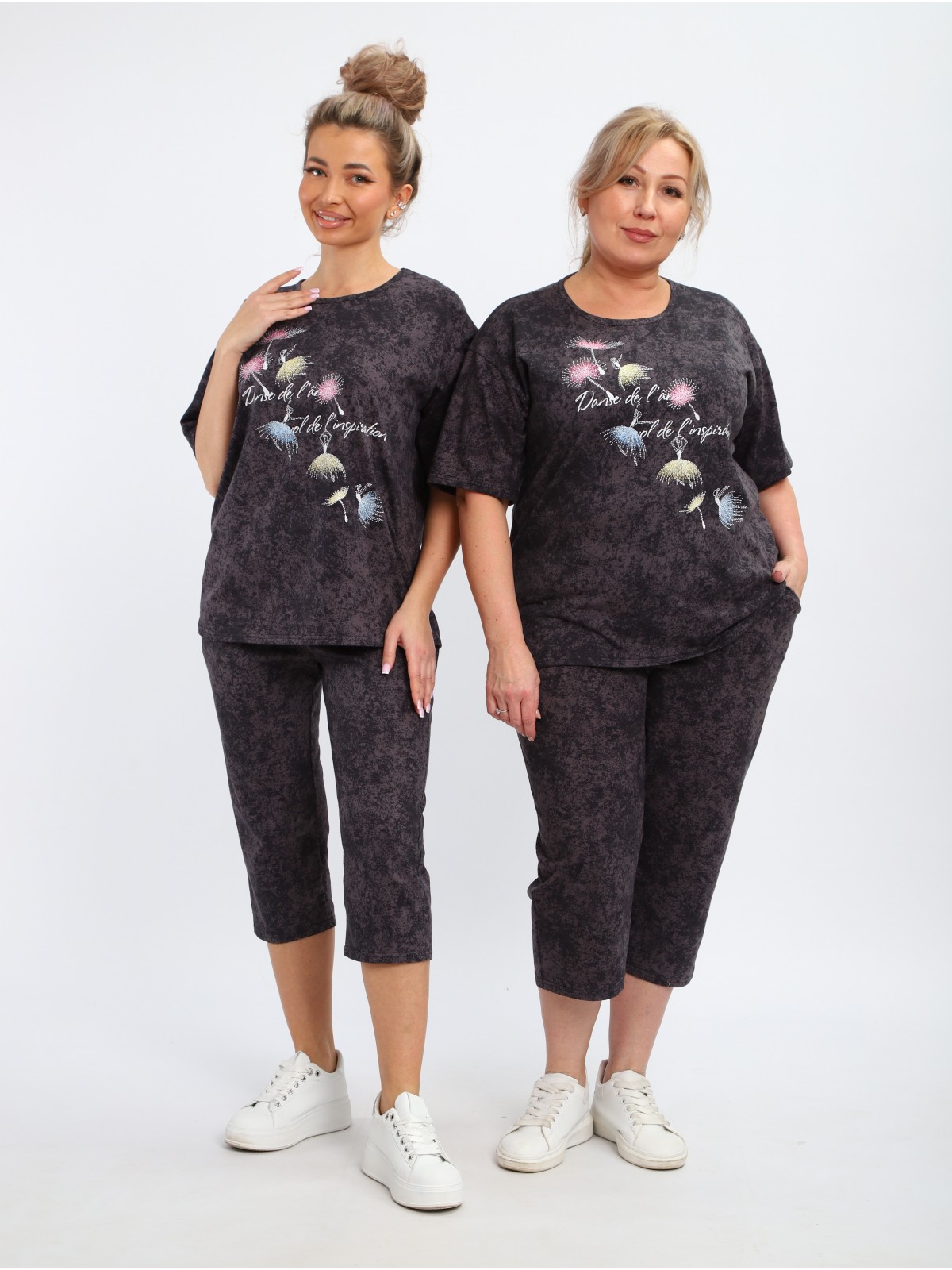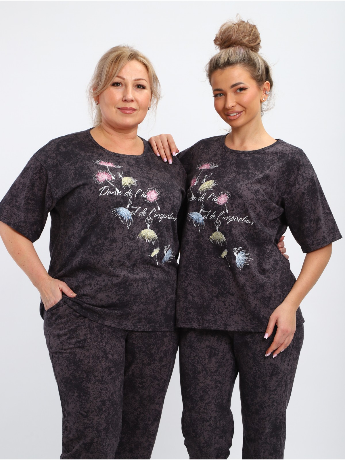 Эта стильная женская пижама состоит из футболки с оригинальной печатью и бриджей. Идеальный выбор для комфортного сна и отдыха.