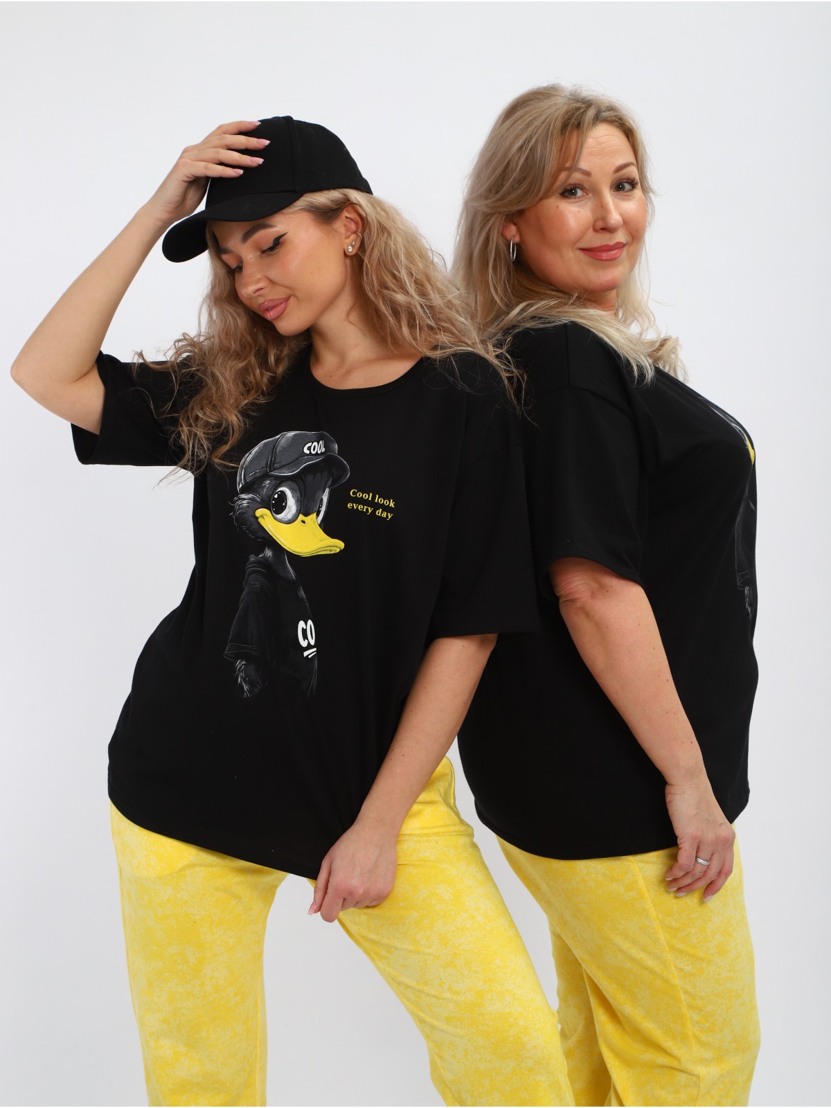 - Футболка выполнена из мягкой кулирки. Печать добавляет яркий акцент и делает образ более привлекательным.