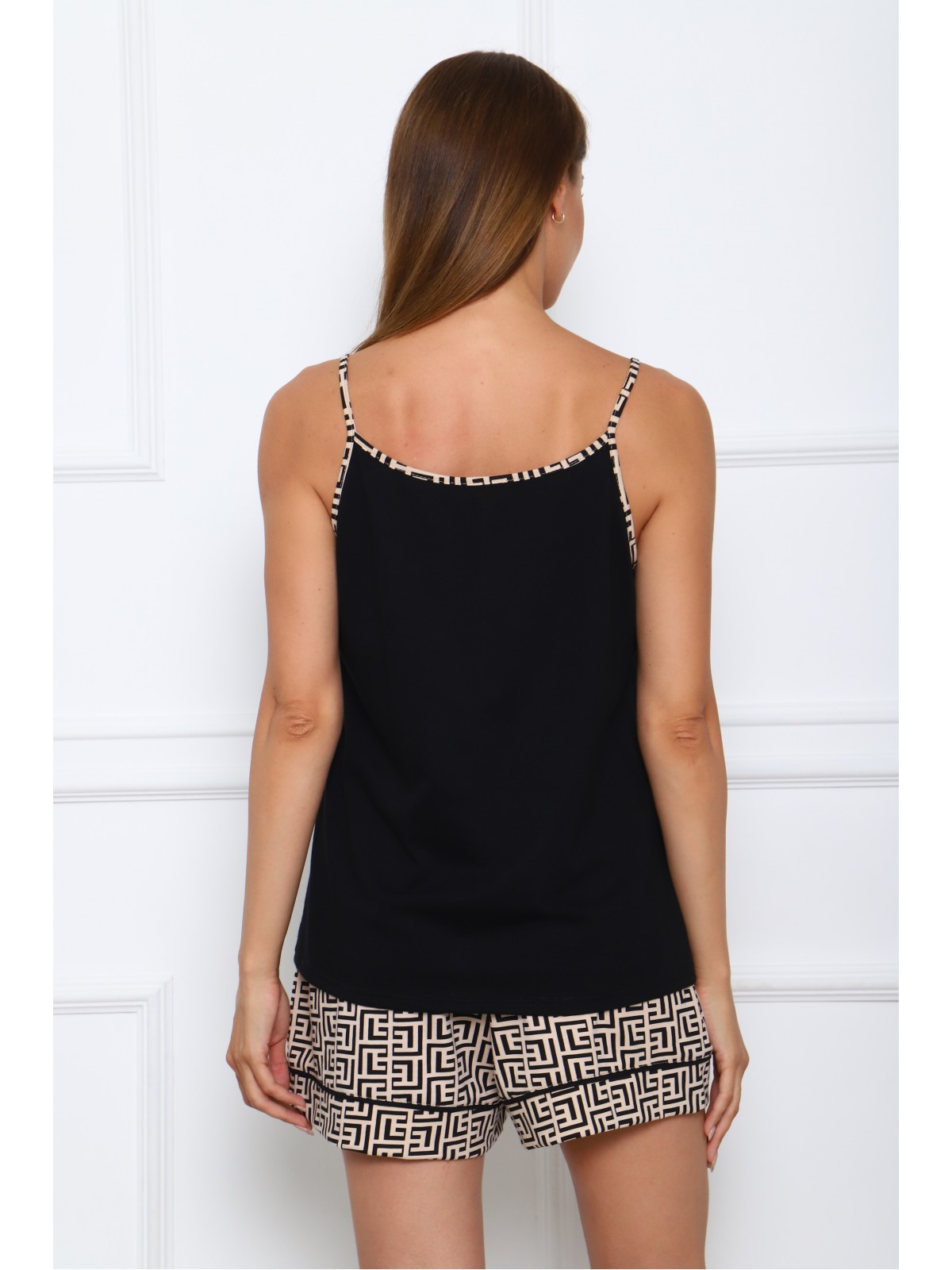 Пижама с шортами выполнена из мягкого трикотажного полотна. Ткань приятна к телу и не вызывает раздражения. Пижама свободного кроя, не сковывает движений и обеспечивает максимальный комфорт во время сна. Шорты на резинке, что позволяет им подстраиваться под любую фигуру. Пижама с шортами на тонких бретелях, станет прекрасным подарком для любой женщины. Она подарит своей обладательнице ощущение комфорта и уюта, а также подчеркнет ее женственность и красоту.